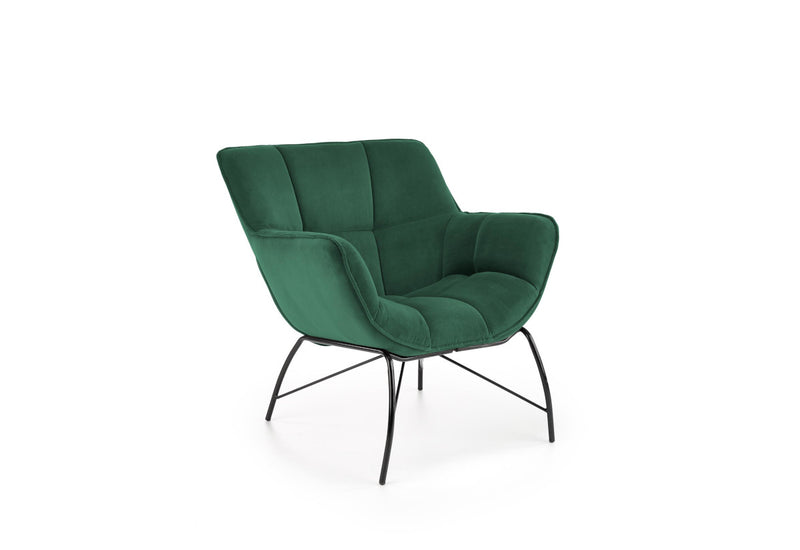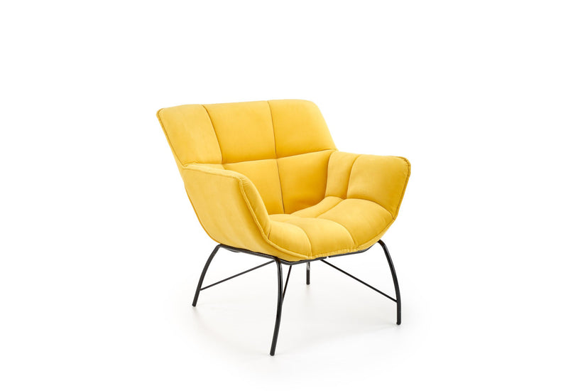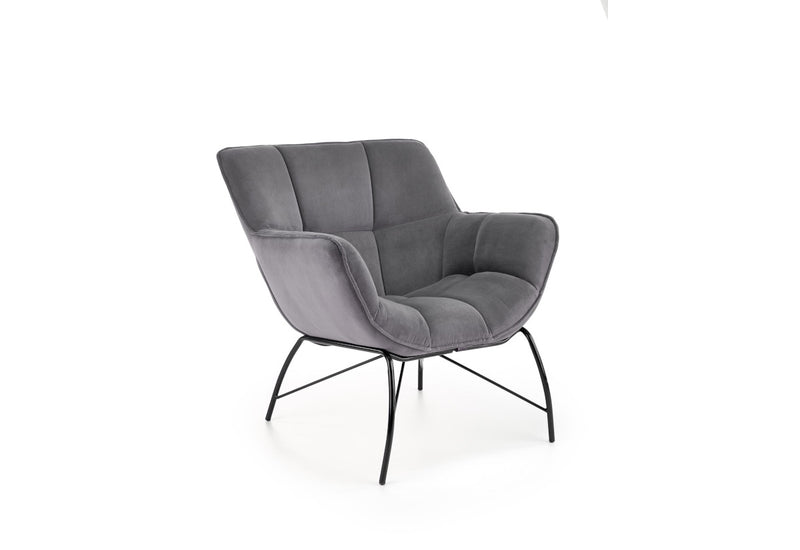 Kreslo BALATON. Moderné kreslo s pohodlným ergonomicky tvarovaným sedákom a operadlom v industriálnom štýle. Potiahnuté zamatovou látkou príjemnou na dotyk. Vďaka jeho tvaru a štýlovému prešitiu ponúka komfortné posedenie. Vysoké kovové nohy sú spojené v konštrukcii, ktorá zaisťuje pevnosť a stabilitu. Vybrať môžete z viacerých ponúkaných farieb.