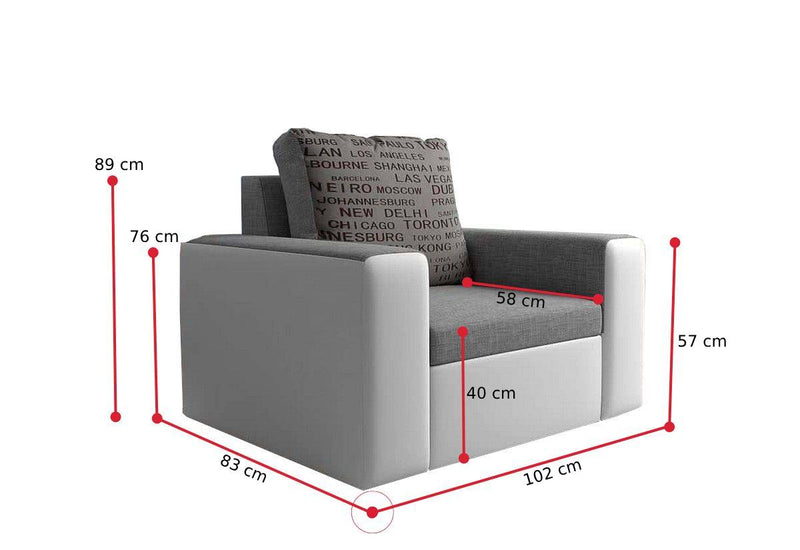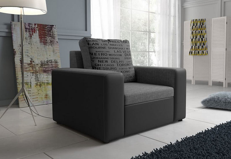Kreslo BRITAIN. Kreslo je vyplnené penou, ktorá zaistí pevnosť. Tento kúsok nábytku dodá vášmu bytu moderný vzhľad. Jedná sa o kombináciu ekokože s látkou. Spolu s kreslom vám dodáme vankúšiky, ktoré sú vyrobené z peny a silikónu a sú na zips.