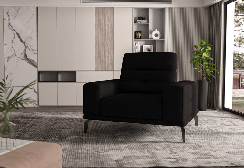 Kreslo CAPARICA zaujme svojím jednoduchým moderným dizajnom. Kreslo je vyplnené kvalitnou HR penou, ktorá poskytuje pohodlie pri odpočinku a relaxácii. Kreslo je kompletne čalúnené, takže bude krásne vyzerať aj v priestore. Veľkou výhodou sú aj nastaviteľné opierky hlavy. Stabilitu zabezpečia čierne oceľové nohy. Na výber je niekoľko farebných variantov.