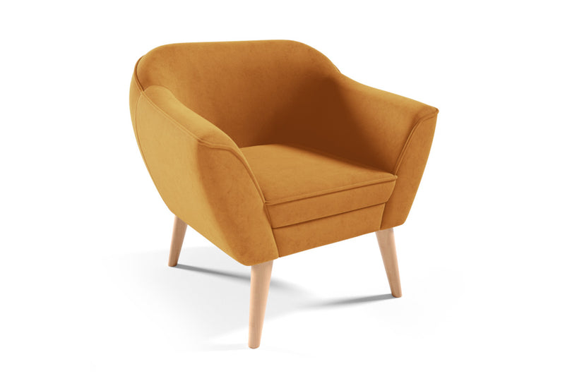 Kreslo KALY. Elegantné čalúnené kreslo vás na prvý pohľad zaujme svojim dizajnom v škandinávskom štýle. Je vyrobené z kvalitných materiálov. Komfortné sedenie zaistí pohodlný sedák vyplnený PUR penou s príjemnou látkou, ktorou je kreslo potiahnuté. Celú konštrukciu podopierajú vyššie nožičky. Možnosť výberu z viacerých čalúnení a farby nožičiek.