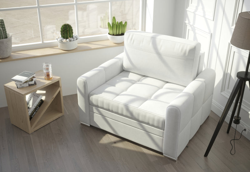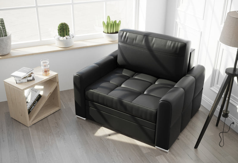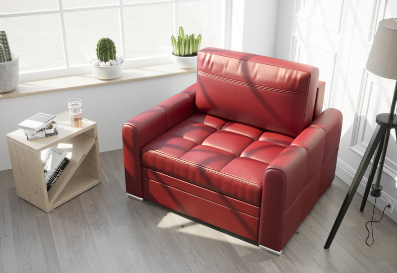 Kreslo RALEN. Elegantné čalúnené kreslo vás na prvý pohľad zaujme svojim jednoduchým dizajnom v modernom štýle. Je vyrobené z kvalitných materiálov . Komfortné sedenie zaistí pohodlný sedák v kombinácii s kožou. Kreslo je obohatené o rozkladací systém, vďaka tomu ho možno využiť ako prístelku. Vybrať môžete z viacerých čalúnení.
