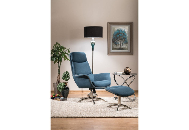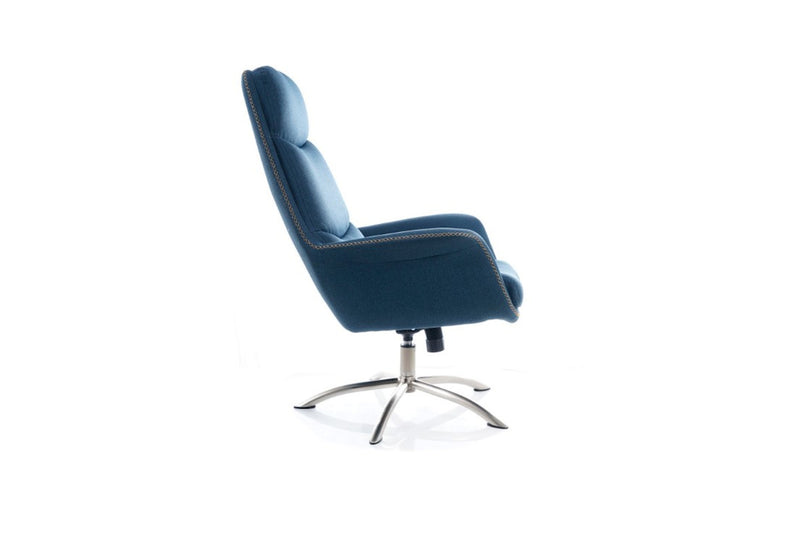 Čalúnené kreslo RONALD je vyrobené z kombinácie látky a kovu. Konštrukcia z leštenej ocele je potiahnutá kvalitnou látkou. Vysoké nožičky dodajú kreslu vzdušnosť. Súčasťou relaxačného kresla je podnožka v rovnakom prevedení ako kreslo a mechanizmus. Tento mechanizmus umožňuje nastaviť výšku sedadla a blokáciu operadla vo zvolenej polohe. Rozmer podnožky je 48x40 cm. Línie kresla sú lemované prešívaním vo svetlej farbe.