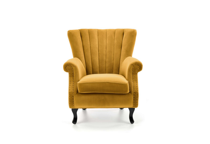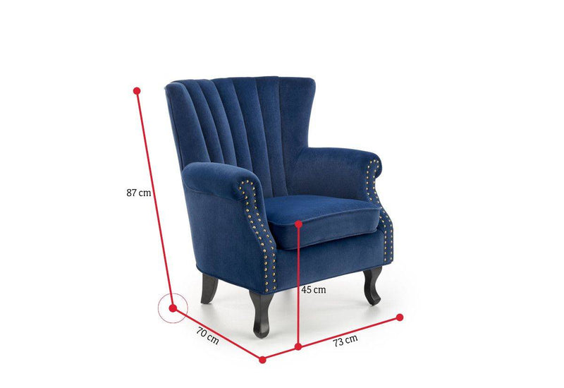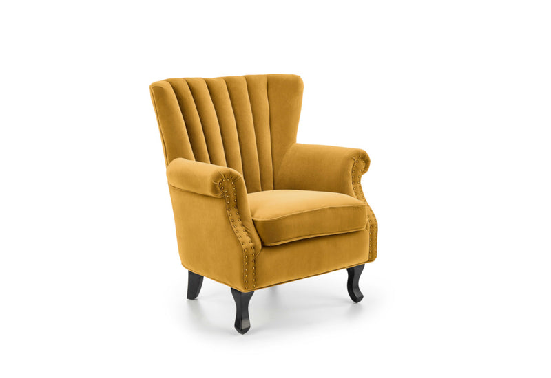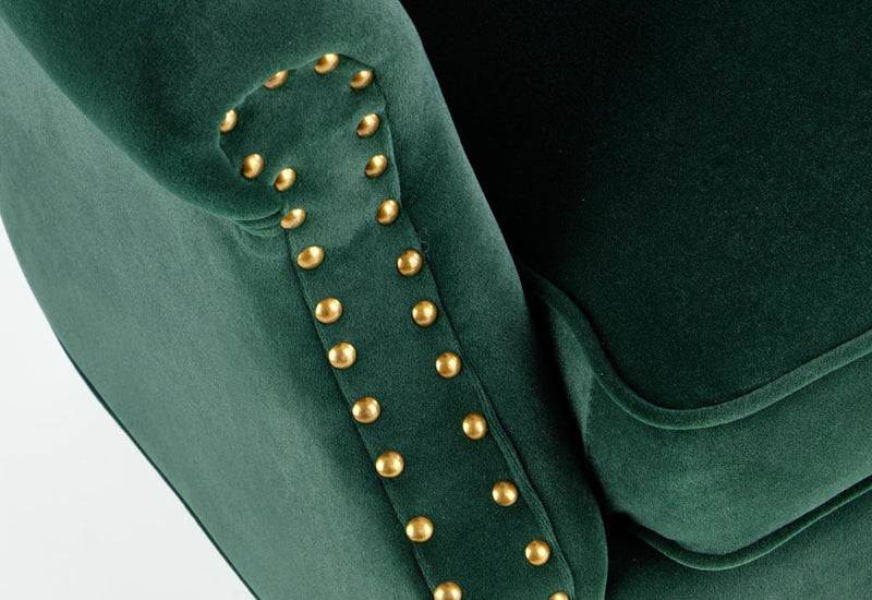 Kreslo TITANO. Zaujme Vás svojim rustikálnym vzhľadom. Vyrobené je z kvalitného materiálu. Pevná konštrukcia je potiahnutá zamatovo hebkou tkaninou. Pohodlné sedadlo a výrazné prešitie opierky chrbta poskytuje komfort pri odpočinku a relaxácii. Línie podrúčiek sú lemované drobnými cvočkami v zlatom prevedení. Vyššie masívne nožičky v čiernom dekore dodajú kreslu vzdušnosť a stabilitu. Možnosť výberu z viacerých farebných variantov.