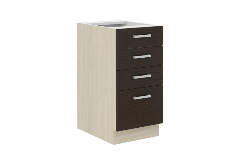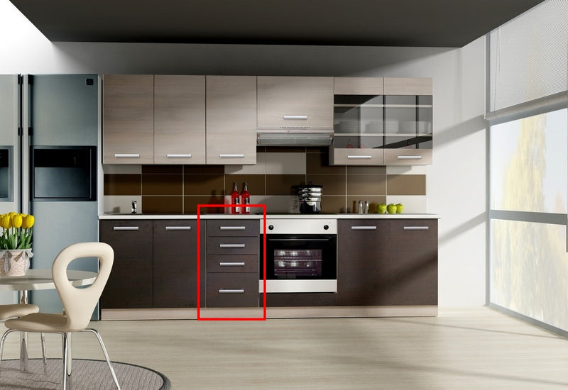 Kuchynská skrinka dolná AVIGNON 40D 4S je vyrobená z kvalitného materiálu hrubého 16 mm. Tvoria ju štyri zásuvky. Je možné dokúpiť pracovnú dosku. Zaujal vás tento štýl kuchyne? Potom si určite pozrite aj ďalšie komponenty zo série AVIGNON.