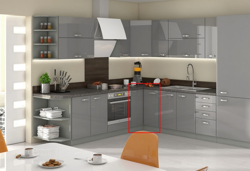 Kuchynská skrinka dolná rohová GRISS je vyrobená z kvalitného laminátu, ktorý chráni hrana PVC. Možná je aj kúpa spolu s pracovnou doskou. Zaujal vás tento vzhľad kuchyne? Potom si určite pozrite aj ďalšie kuchynský nábytok GRISS.
