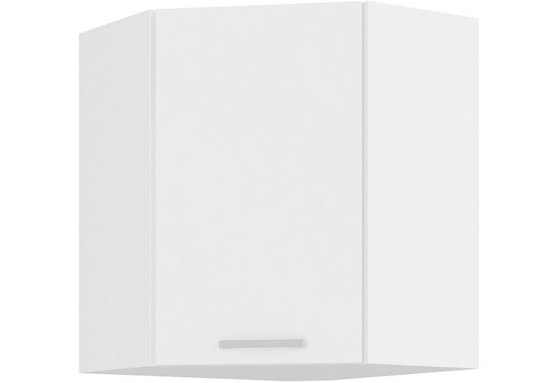 Kuchynská skrinka horná rohová ALBERTA je vyrobená z lamina, ktoré vystužuje hrana PVC. Úložný priestor kryjú jedna dvierka s plastovými úchytkami. Zaujal vás tento štýl kuchyne? Potom si určite pozrite aj ďalšie komponenty ALBERTA.