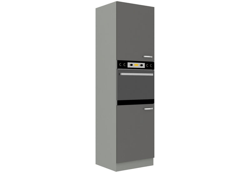 Kuchynská skrinka vstavaná vysoká GRISS je vyrobená z lamina, ktoré pred poškodením chráni hrana PVC. Tvoria ju dve veľké dvierka s kovovými úchytkami, medzi ktorými je voľný priestor. Dvierka disponujú systémom tichého dojazdu. Zaujal vás tento moderný vzhľad? Potom si určite pozrite aj ďalšie komponenty zo série GRISS.