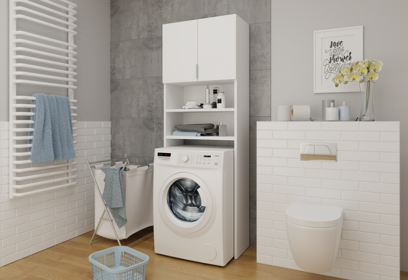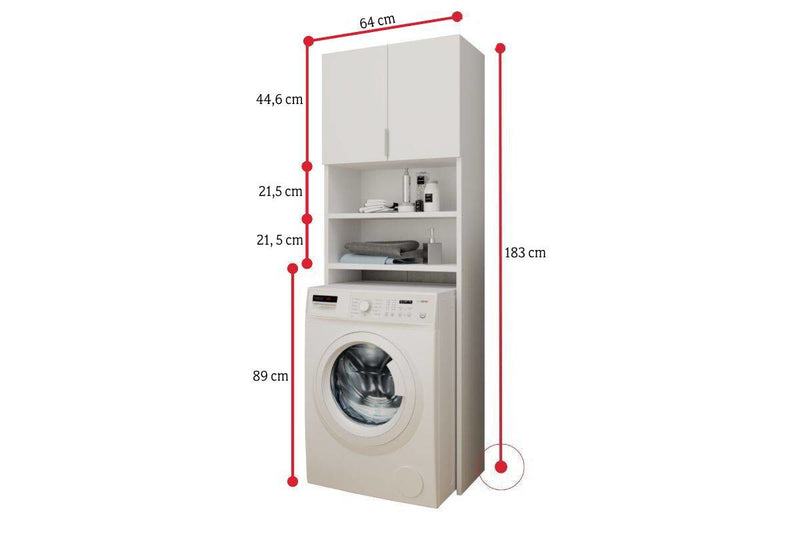 Kúpeľňová skrinka na práčku VEXI. Je vyrobená z kvalitného materiálu. Materiál je opatrený ABS hranou, ktorá chráni pred mechanickým poškodením. Skrinka zaistí ochranu práčky. Súčasťou je aj úložný priestor v podobe dvoch otvorených políc a jednej skrinky. Môžete vybrať z viacerých dekorov