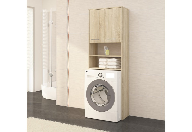 Kúpeľňová skrinka nad práčku IFA je vyrobená z kvalitnej a odolnej laminovanej dosky s hrúbkou 16 mm, ktorej okraje sú chránené hranou ABS. Keďže skrinka ponúka celkom 4 úložné priestory z ktorých 2 majú dvierka, nebudete musieť nechávať pracie prostriedky na dosah vašim deťom. Ďalšou výhodou je možnosť výberu farby, takže sa nemôže stať, že by neladila ku zvyšku vášho interiéru.