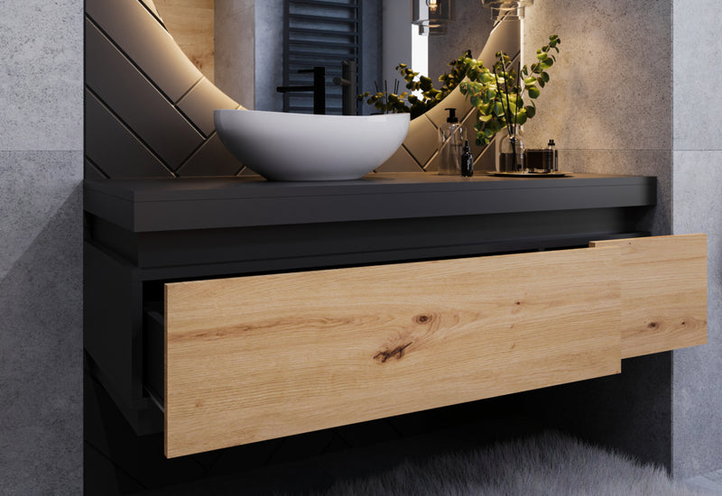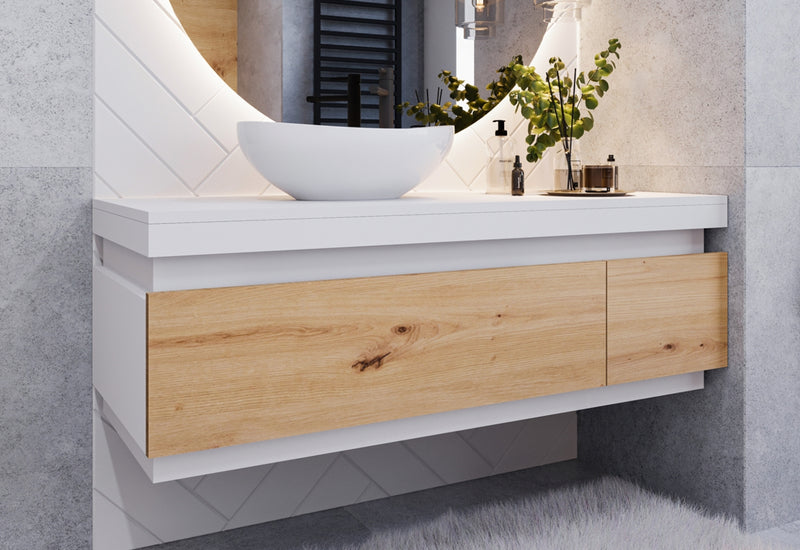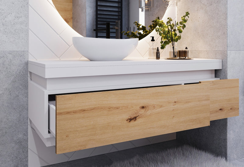 Kúpeľňová skrinka pod umývadlo SELAH. Je vyrobená z kvalitného materiálu a vybavená ABS hranou. Tá ju chráni pred mechanickým poškodením a vlhkosťou. Skrinka poskytuje dostatok úložného priestoru v podobe dvoch zásuviek. Čelá zásuviek sú v dekore dreva dub lefkas. Skrinka je určená na montáž na stenu. Vybrať môžete z dvoch farebných prevedení. Balenie neobsahuje umývadlo, batériu ani sifón. Odporúčame kombinovať s ďalšími produktmi z toho istého radu.