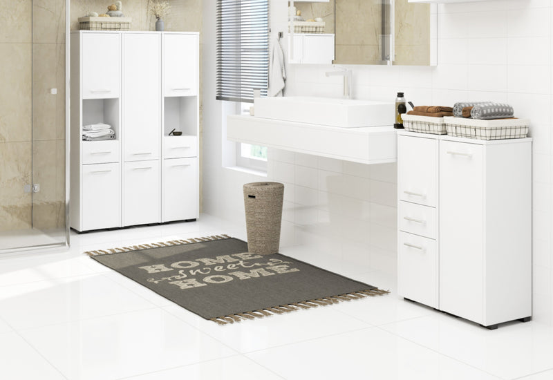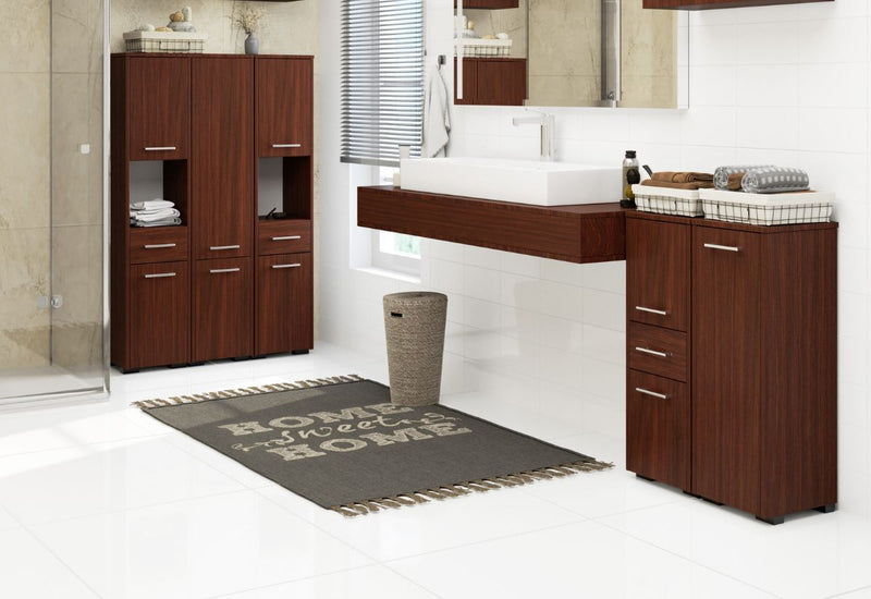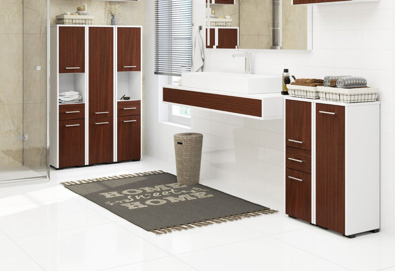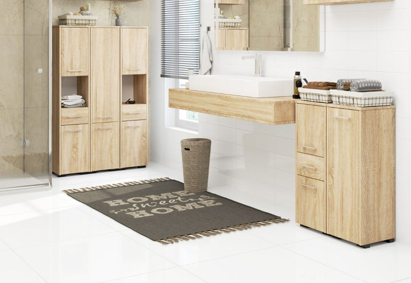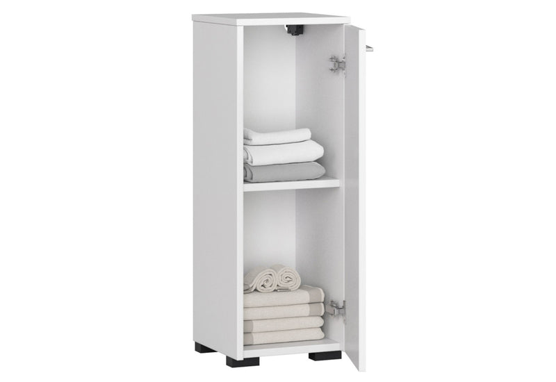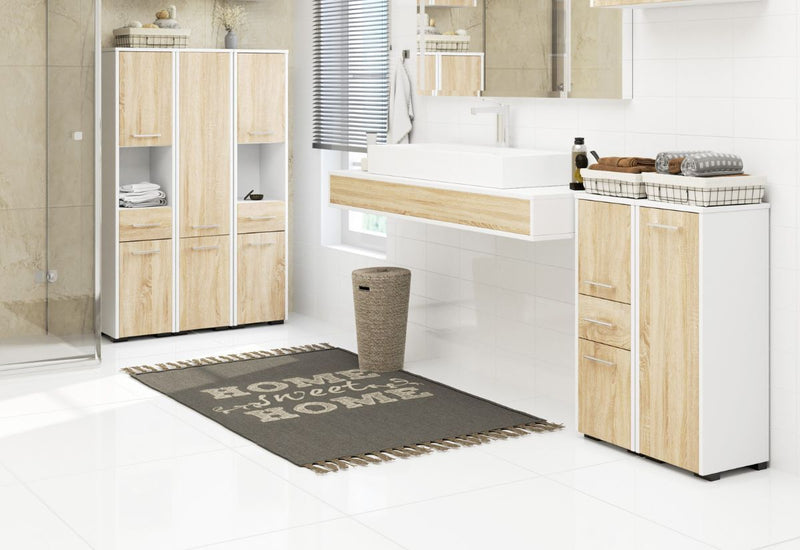Kúpeľňová skrinka SLAVIA. Moderná kúpeľňová skrinka zaujme svojim jednoduchým dizajnom. Je vyrobená z kvalitných materiálov a opatrená ABS hranou, ktorá chráni pred mechanickým poškodením a vlhkosťou. Poskytuje dostatok úložného priestoru za dvierkami, kde sa nachádza polička. Vyberajte z niekoľkých dekorov.