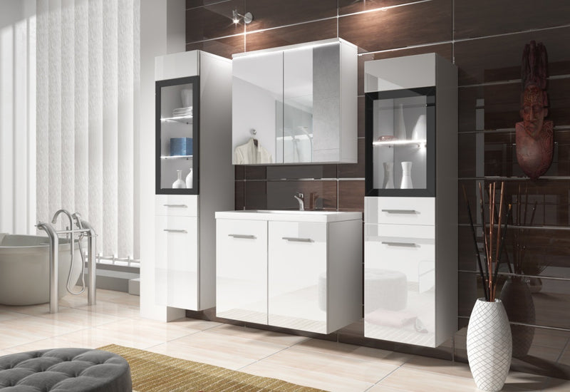 Kúpeľňová zostava EMBER II s umývadlom. Vyrobená je z LTD dosky s ABS hranou. Táto kombinácia chráni nábytok pred poškodením. Umývadlo dodávame bez batérie a je vyrobené z dolomitového konglomerátu. Zostavu tvoria 2 závesné regály, skrinka s umývadlom a skrinka so zrkadlom. Pokiaľ chcete vzhľad tejto kúpeľňovej zostavy ešte viac umocniť, môžete si navoliť LED osvetlenie. Možnosť výberu z viacerých dekorov.