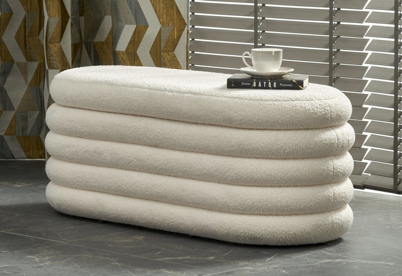 Lavica ANUM. Zaujme jednoduchými líniami moderného štýlu, vďaka svojmu vzhľadu nájde svoje miesto v každom interiéri a zaistí tak príjemné miesto pre odpočinok. Je kompletne polstrovaná látkou bouclé, ktorá mu dodáva výrazný štýl. Je vyrobená z kvalitných materiálov. Tento kúsok nábytku dodá vášmu bytu moderný vzhľad vďaka svojmu dizajnu. Veľkou výhodou lavice je úložný priestor.