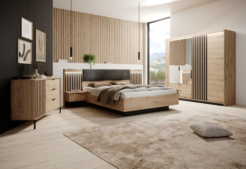 Manželská posteľ TALMA (dub artisan/antracit / Nočné stolíky - NIE / 160x200)