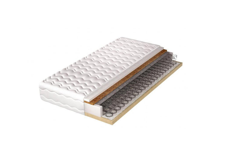 Matrac v drevenom ráme DONA PLUS je posadená na pevnom drevenom rošte, možno ju umiestniť do postele bez kupovanie ďalšieho roštu. Matrac je vyrobená z pružín typu BONELL, kokosové vrstvy v spojení s PUR penou. Tento matrac je hypoalergénny a odolná voči roztočom. Výška matraca vrátane poťahu je 21 cm.