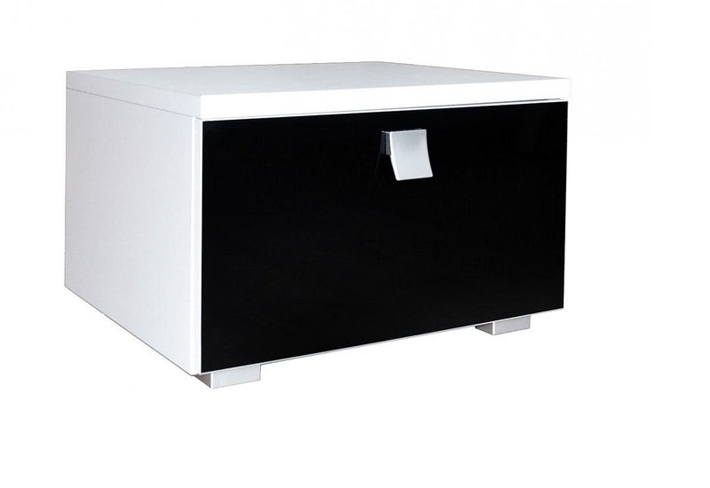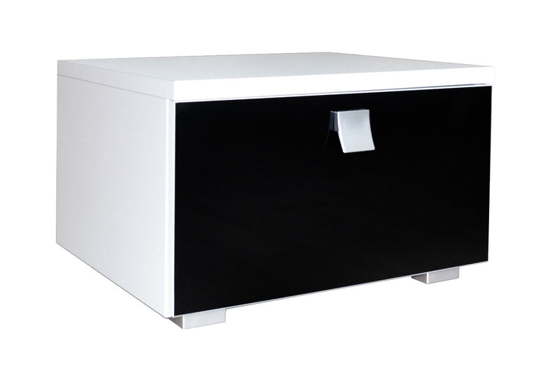 Nočný stolík AGARIO je vyrobený z vysokokvalitného materiálu. Korpus je z dosiek v bielej matnej farbe a dopĺňajú ho predné lesklé časti, ktoré sú potiahnuté akrylovou fóliou, ktorá dodáva efekt vysokého lesku. Každý kus nábytku má priložený podrobný manuál pre ľahkú montáž.