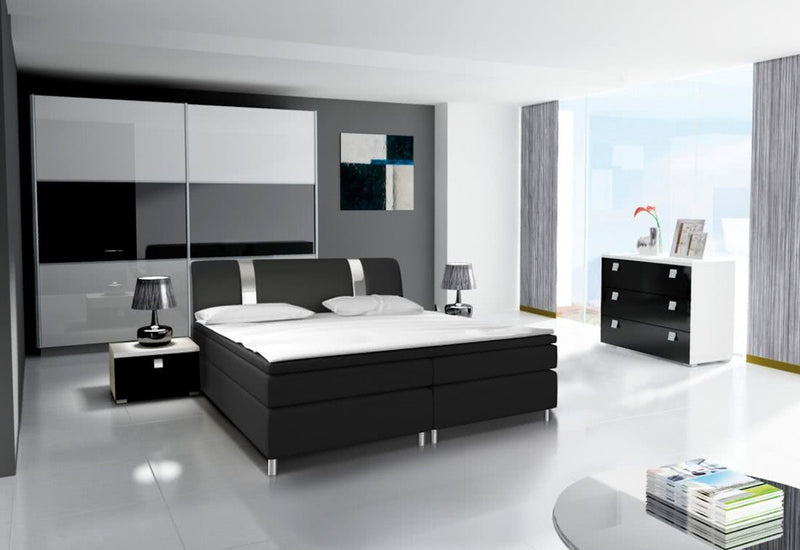 Stolík AGARIO ponúkame tiež je ako súčasť spálňovej zostavy, ktorá sa skladá zo všetkých potrebných komponentov, bez ktorých sa žiadna spálňa nezaobíde. Jej súčasťou je šatníková skriňa (200/240/270), kombinovaná komoda so zásuvkami a dvierkami, dva nočné stolíky a posteľ s roštom (140/160/180).