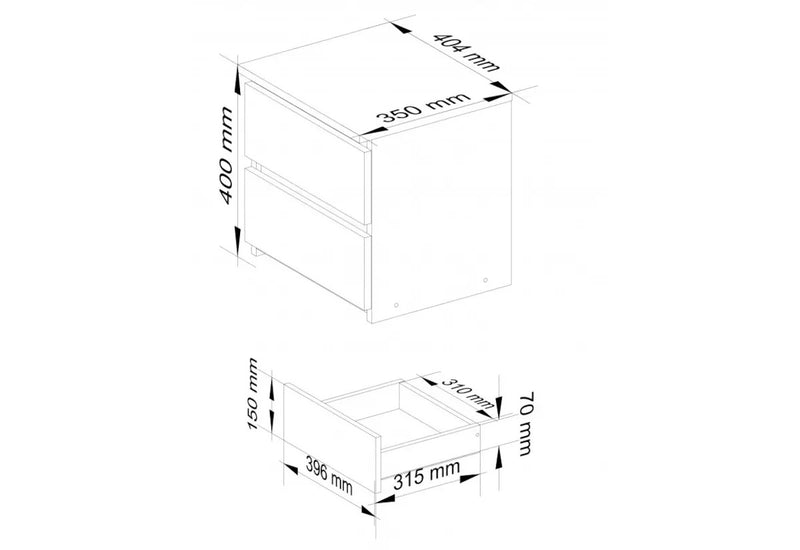 Nočný stolík ARMARIA CL 2 je vyrobený z kvalitného materiálu v hrúbke 16 mm. To proti poškodeniu chráni hrana ABS. Úložný priestor sa skladá z dvoch zásuviek. Na odkladanie vecí slúži aj horná pevná doska. Vybrať si môžete z viacerých dekorov.