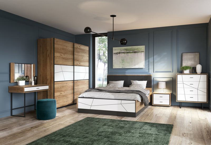 Nočný stolík BRONO (dub catania/biely lesk/čierna)