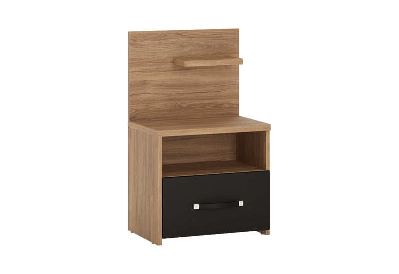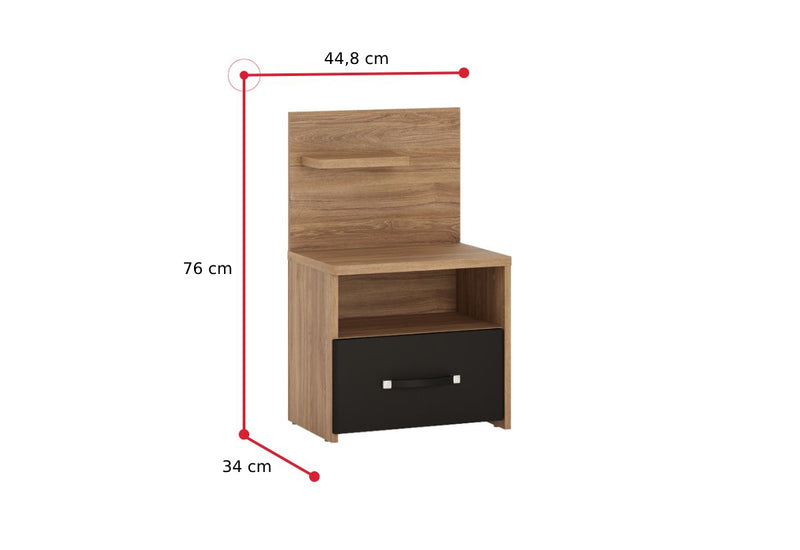 Nočný stolík MORACO. Stolík vás zaujme svojim jednoduchým dizajnom v modernom štýle. Vhodne kombinuje dekor duba stirling s matnou čiernou farbou. Je vyrobený z kvalitného materiálu a poskytuje dostatok úložného priestoru v podobe šuplíka a otvorenej police. Ako odkladací priestor môžete využiť aj hornú dosku stola a poličku, ktorá je umiestnená vpravo alebo vľavo podľa vašej potreby či preferencie. Odporúčame tiež kombinovať s ďalšími produktmi z radu MORACO.