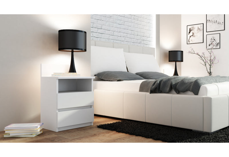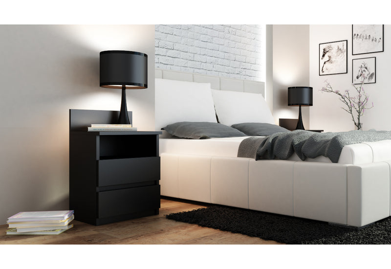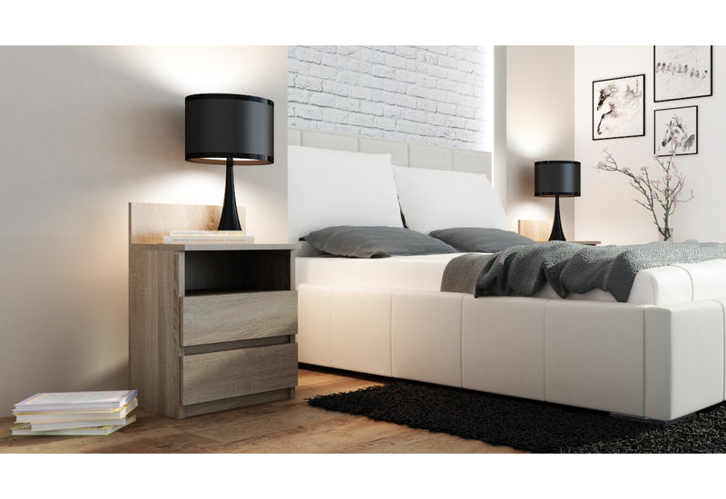 Nočný stolík Notta P1. Je vyrobený z kvalitného materiálu s ABS hranami. Tie chránia pred poškodením. Disponuje odkladacou plochou, otvorenou poličkou a dvomi zásuvkami. Stolík zaujme nadčasovým dizajnom. K dipozícii je v rôznych farebných prevedeniach.