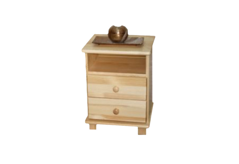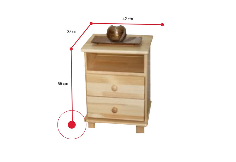 Nočný stolík z masívu JULY zapadne do každého interiéru. Je vyrobený z borovicového dreva a je ošetrený ekologicky nezávadným lakom v štyroch farebných variantoch. Táto technológia predĺžuje životnosť, zvyšuje odolnosť voči poškodeniu a maximálne uľahčuje údržbu. Súčasťou stolíka sú dve zásuvky s kvalitným pojazdom s kolieskami a drevenými úchytkami.