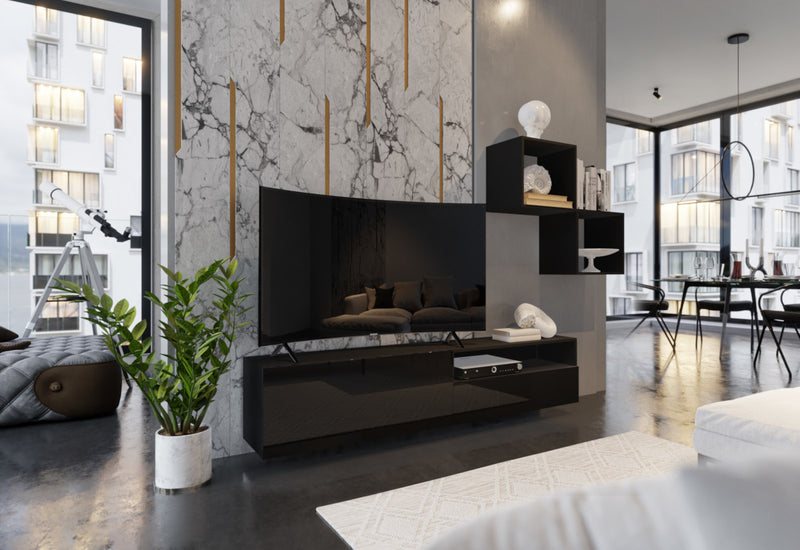 Obývacia stena ELPASO 29, čierna/čierna lesk -  - 0