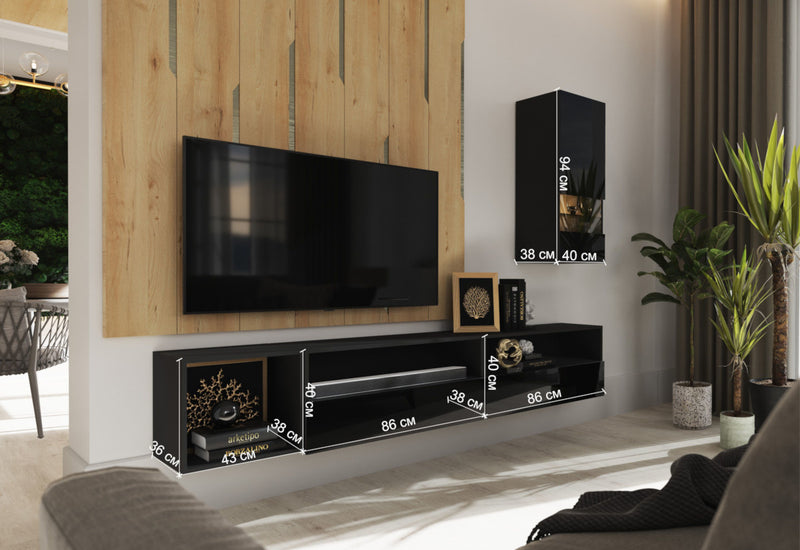 Obývacia stena ELPASO 42 (čierna/čierna lesk / nie)