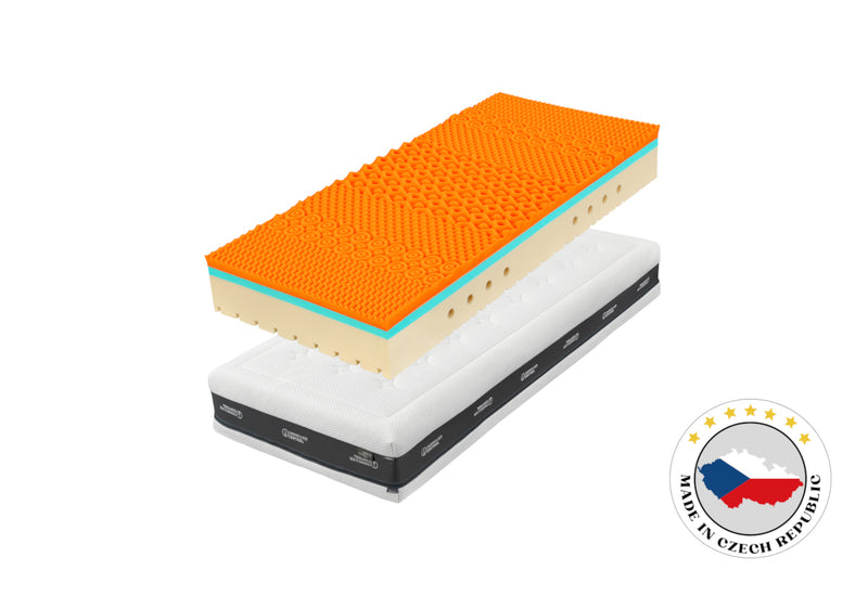 Penový matrac NATURA. Matrac s pamäťovou penou prináša pohodlie. Pamäťová pena optimálne kopíruje, odľahčuje a podopiera telo presne tam, kde má. Medzivrstva z pružnej studenej peny zaručí ľahké otáčanie pri spánku. Pomocou termoregulácie sa obmedzí potenie na minimum. Studená pena má výbornú priedušnosť a odrazovú pružnosť, zvýšenú tuhosť a odolnosť. Dizajnovo prepracovaný prateľný poťah wellnes zaisťuje termoreguláciu a obmedzuje potenie, opatrený je zipsom. Možnosť voľby výšky matraca.