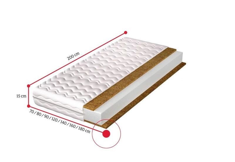 Penový matrac TONDA 15 je vyplnený PUR penou T25 s hrúbkou 13 cm s filcom a kokosovou rohožou 1 cm. Je obojstranná a odporúčame ju obracať každé 2-3 mesiace. Túto matrac radíme medzi tvrdé. Disponuje poťahom, ktorý je vhodný na pranie do 40 ° C. Výška matraca je cca 15 cm vrátane poťahu.