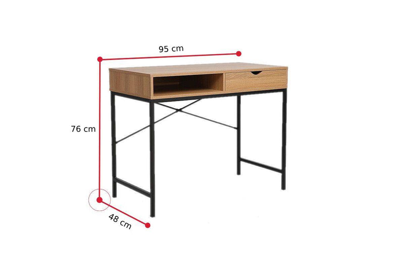 Písací stôl AMAN. Zaujme svojím vzhľadom v industriálnom štýle. Písací stôl je vyrobený z kvalitných materiálov. Pevná kovová konštrukcia zaistí stabilitu a pevnosť pri každodennom používaní. Vytvára dostatok priestoru v podobe pracovnej plochy, otvorenej priehradky a šuplíka s výrezom pre ľahké otváranie.