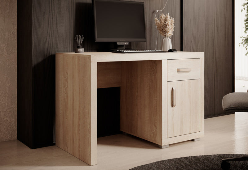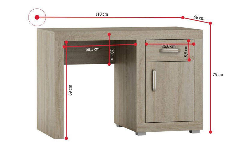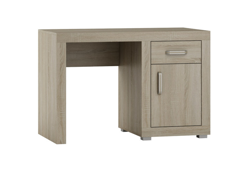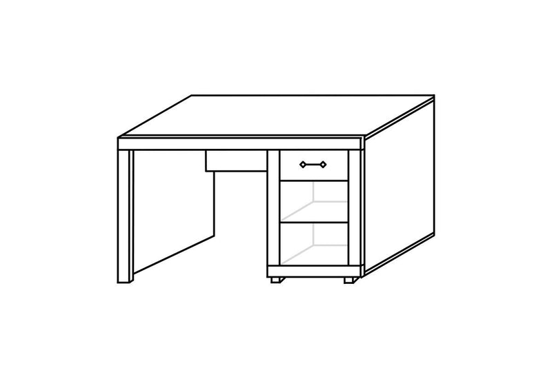 Písací stôl BAHAN. Zaujme svojim praktickým a zároveň moderným dizajnom. Písací stôl je vyrobený z kvalitného materiálu s hrúbkou 1,8 cm. Vytvára dostatok priestoru v podobe pracovnej plochy, zásuvky a skrinky s dvierkami. Skrinka je rozdelená poličkou na prehľadnejšie usporiadanie vecí. Vybavený je úchytmi pre ľahšiu manipuláciu. Možnosť kombinovať s ďalšími produktmi z radu BAHAN.
