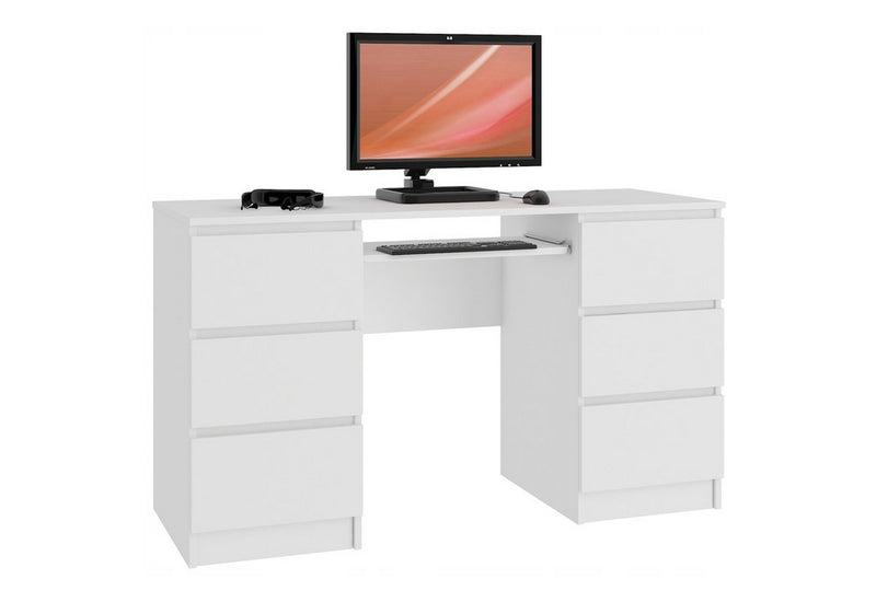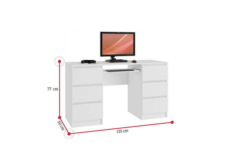 Písací stôl KORDA A-11 je vyrobený je z prvotriedneho lamina hrúbky 16 mm s hranami ABS. Na každej strane sú umiestnené tri zásuvky a pod hlavnou pracovnou plochou nájdete výsuvnú dosku na klávesnicu. Vyberať si môžete z troch farieb.