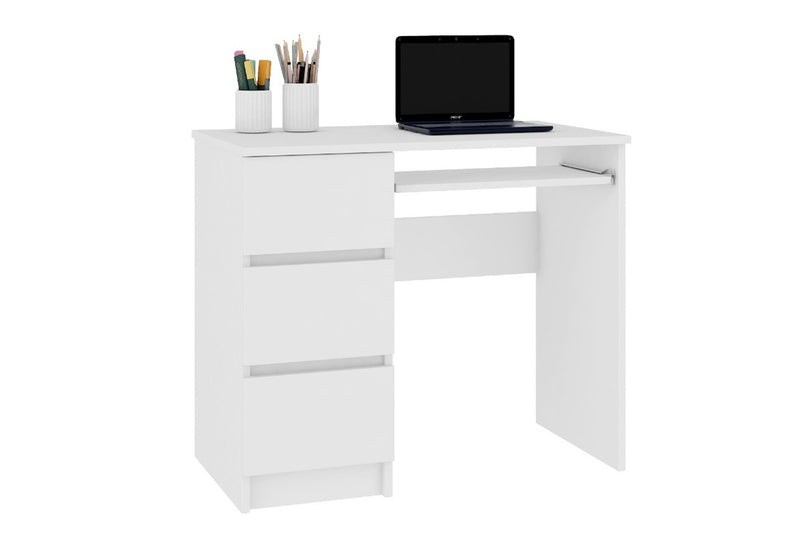 Písací stôl KORDA A-6 je vyrobený z kvalitnej a odolnej dosky s hrúbkou 16 mm, ktorej okraje sú chránené ABS hranou. Ako úložný priestor slúžia 3 priestranné zásuvky na pravej alebo ľavej strane a výsuvný šuplík na klávesnicu. Stôl je dostupný vo viacerých farebných prevedeniach a to vrátane lesklých. V lesklom prevedení sú vždy predné strany zásuviek, ostatné časti sú v mate.