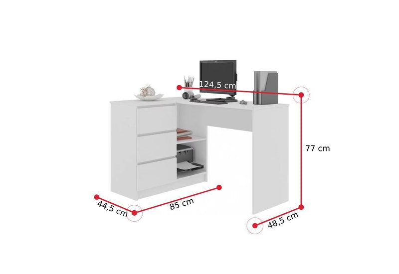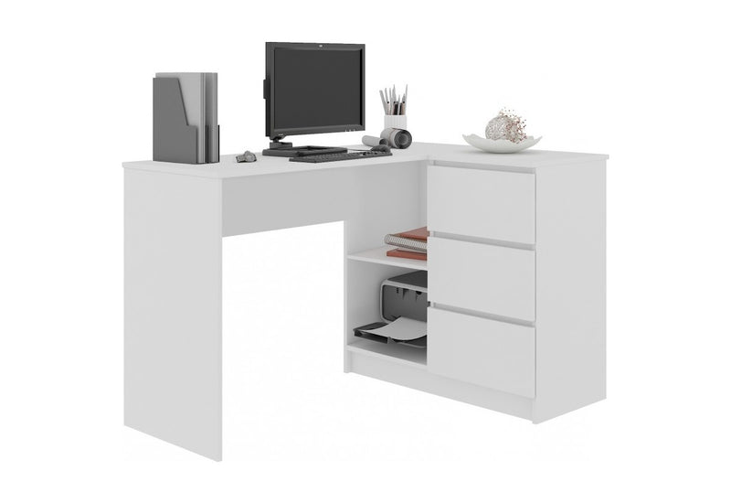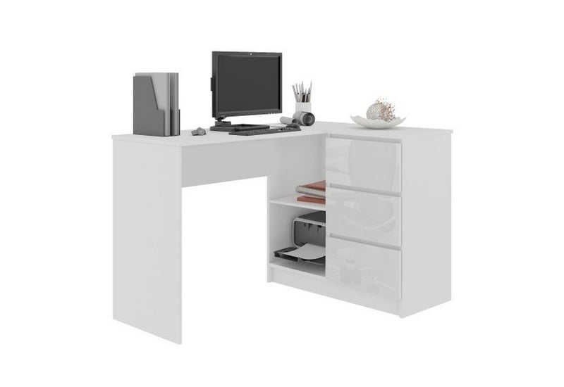 Písací stôl KORDA B16 je vyrobený z kvalitného lamina hrúbky 16 mm, ktorá má okraje chránené ABS hranou. Súčasťou sú tri zásuvky s orientáciou na pravú alebo ľavú stranu a dve otvorené zásuvky. Stôl je dostupný vo viacerých farebných prevedeniach a to vrátane lesklých. V lesklom prevedení sú vždy predné strany zásuviek. Ostatné časti sú v mate.