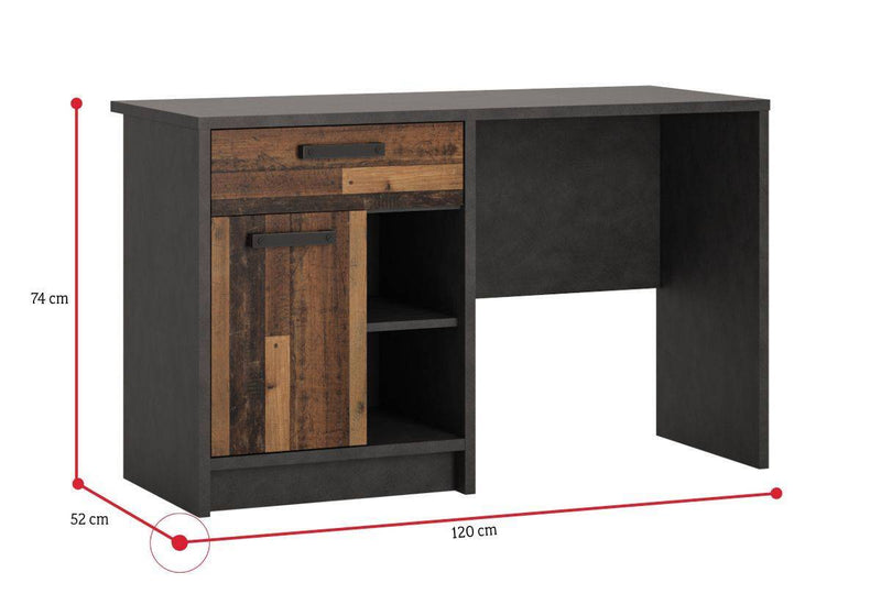 Písací stôl NUBUS. Zaujme svojim praktickým a zároveň moderným dizajnom. Písací stôl je vyrobený z kvalitného materiálu. Vytvára dostatok priestoru v podobe pracovnej plochy, zásuvky, otvorených políc a skrinky s dvierkami. Skrinka je rozdelená poličkou na prehľadnejšie usporiadanie vecí. Vybavený je úchytmi pre ľahšiu manipuláciu. Možnosť kombinovať s ďalšími produktmi z radu NUBUS.