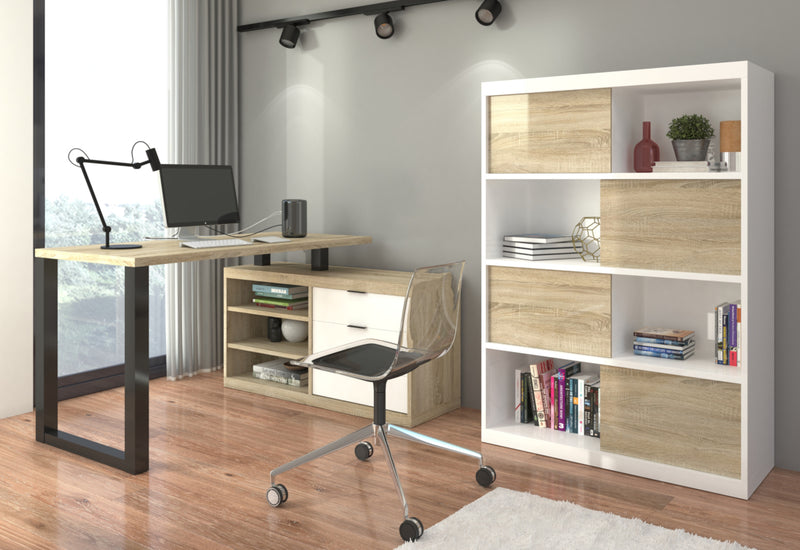 Písací stôl RAMO. Zaujme moderným dizajnom. Vyrobený je z kvalitného materiálu s ABS hranou. Tá chráni pred poškodením a vlhkosťou. V stole je zabudovaná skrinka s tromi šuplíkmi a jednou policou. Obsahuje dostatok miesta v podobe pracovnej plochy. Tento stôl si nájde miesto v každej kancelárii.
