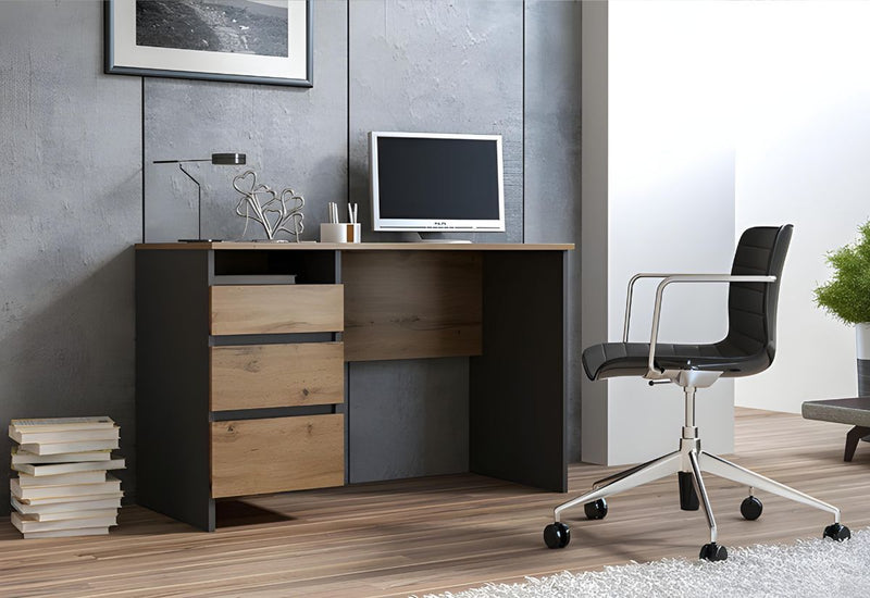 Pracovný stôl SADIF. Uvítate jeho praktické využitie v modernom vzhľade. Stôl je vyrobený z kvalitného materialu. Je vybavený hranami ABS na lepšiu ochranu pred mechanickým poškodením a vlhkosťou. Vytvára dostatok priestoru v podobe pracovnej plochy a priestranných zásuviek. Stôl je k dispozícii v niekoľkých farebných prevedeniach.