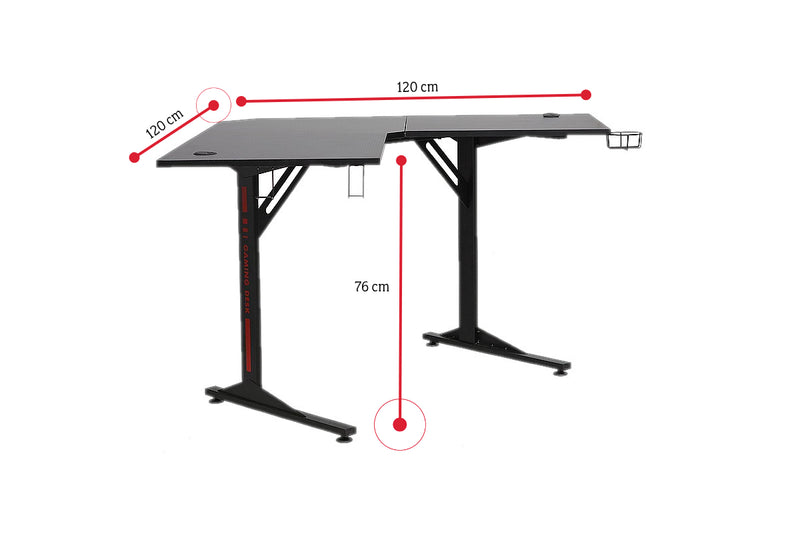 Počítačový herný stôl MEDR. Moderné a minimalistické prevedenie počítačového stola je tým pravým do vašej izby. Konštrukcia je tvorená kovovými nohami, ktoré zaručia stabilitu a pevnosť celého stola pri každodennom používaní. Pre maximálne využitie miesta nájdete na boku stola pripevnený kovový držiak na pitie a držiak na slúchadlá.