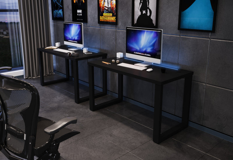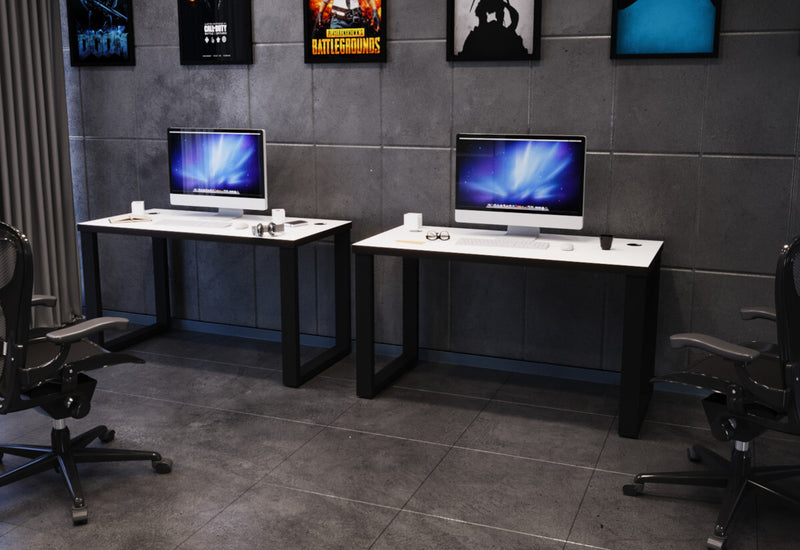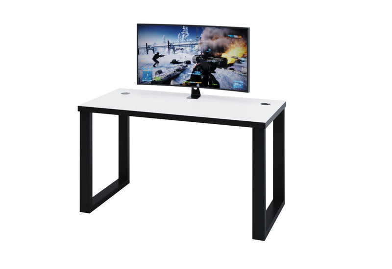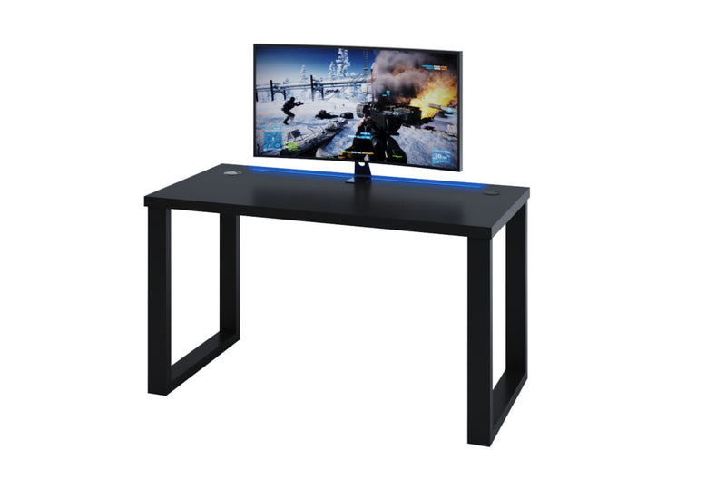 Počítačový herný stôl SLAVIN. Stojí na pevných kovových nohách, vďaka ktorým je stabilný. Doska je vyrobená z kvalitného lamina a je opatrená ABS hranami, ktoré chránia pred mechanickým poškodením. Nachádzajú sa na nej dve káblové priechodky. Vybrať môžete z dvoch farebných dekorov, s možnosťou dokúpenia LED osvetlenia.