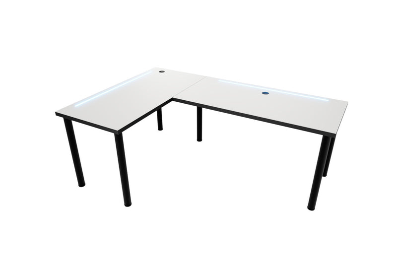 Počítačový rohový stôl LOOK N stojí na pevných kovových nohách. Doska je vyrobená z kvalitného materiálu hrúbky 18 mm. Súčasťou stola sú dve káblové priechodky. Dokúpiť si môžete aj LED osvetlenie. U LED osvetlenia je možné vyberať zo šestnástich rôznych farieb a zároveň meniť ich intenzitu.