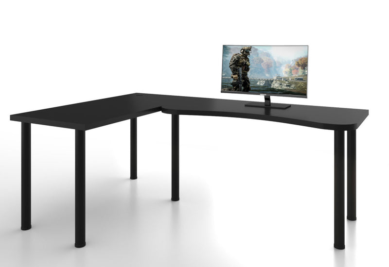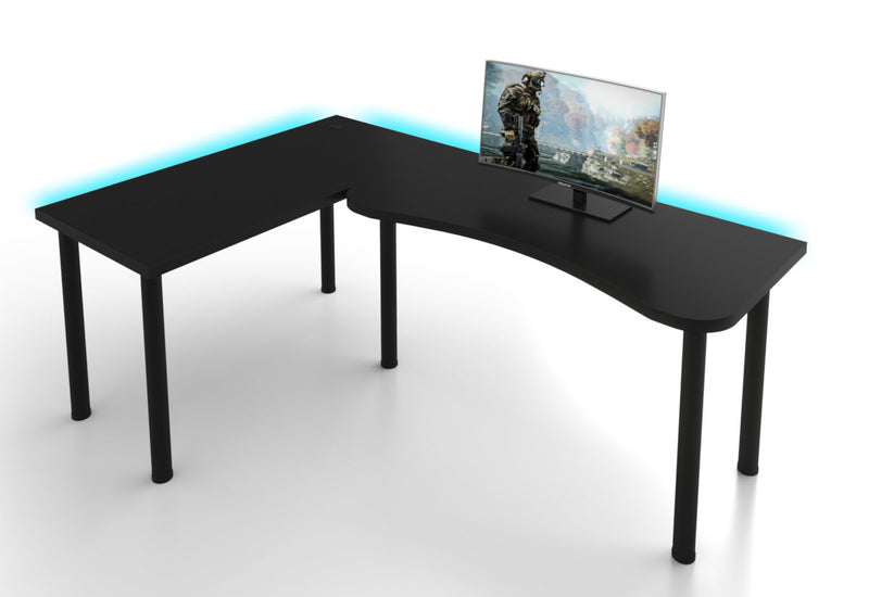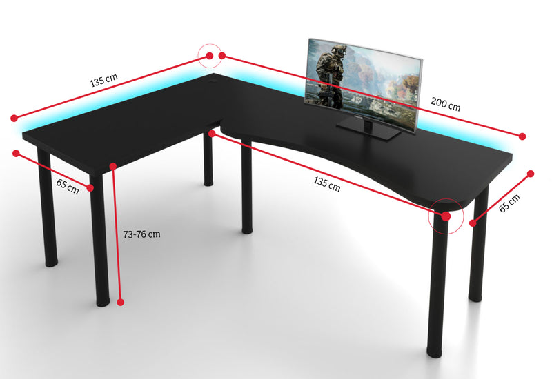 Počítačový rohový stôl MOOD L stojí na pevných kovových nohách. Doska je vyrobená z kvalitného materiálu hrúbky 18 mm. Časť pracovnej dosky je ergonimicky tvarovaná. Súčasťou stola sú dve káblové priechodky. Veľkou výhodou je nastaviteľná výška. Dokúpiť si môžete aj LED osvetlenie. Zaťažiteľnosť každej dosky stola je 60kg. U LED osvetlenia je možné vyberať zo šestnástich rôznych farieb a zároveň meniť ich intenzitu.