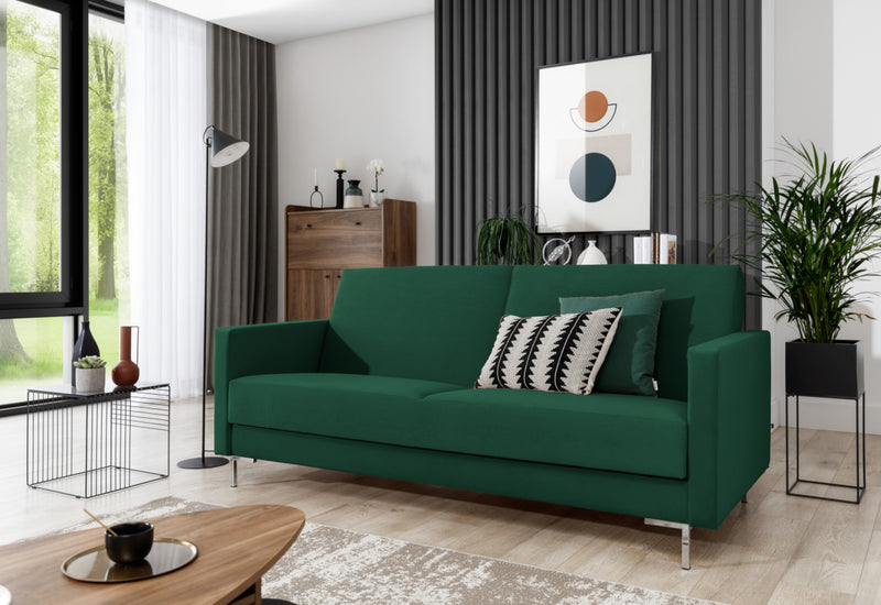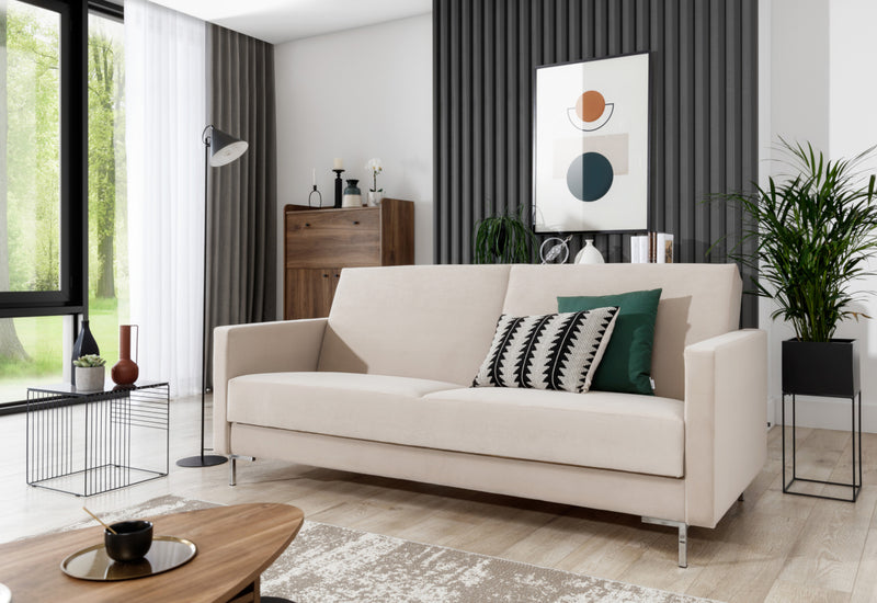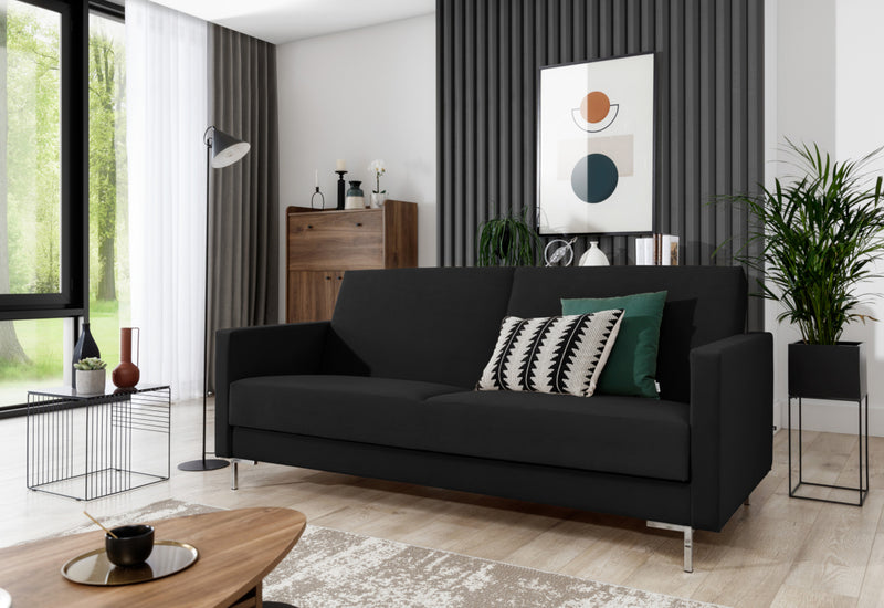 Pohovka AZAEL. Zaujme jednoduchým moderným dizajnom. Pohovka je vyplnená kvalitnou penou, ktorá ponúka pohodlie pri odpočinku a relaxácii. Pohovka je celočalúnená, takže aj v priestore bude vyzerať nádherne. Z pohovky je možné ľahko pripraviť spaciu plochu. Ďalšou veľkou výhodou je úložný priestor. Vysoké kovové nožičky zaistia pevnosť a stabilitu. Môžete si vybrať z viacerých čalúnení.