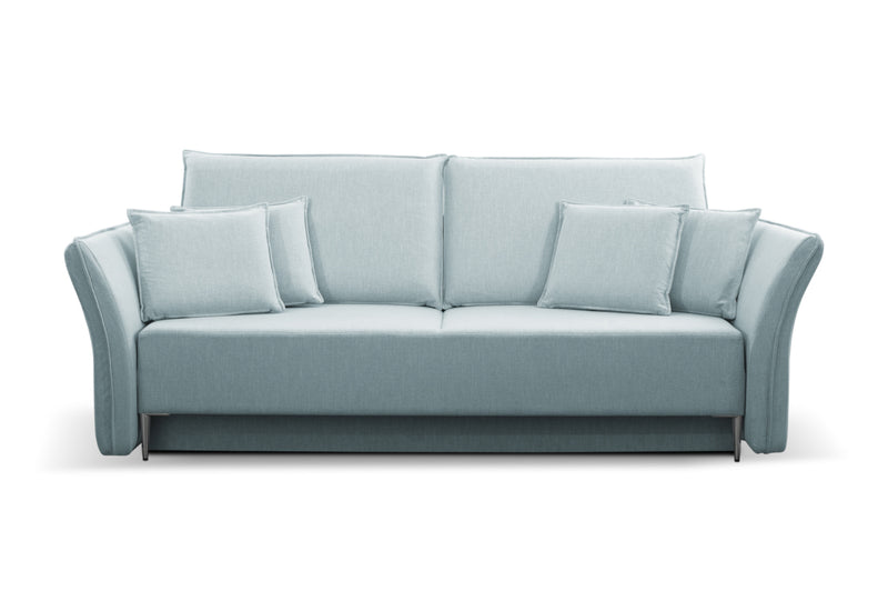 Pohovka GREBI. Zaujme svojim elegantným dizajnom. Disponuje úložným priestorom a vďaka rozkladaciemu mechanizmu ľahko premeníte pohovku na lôžko. Komfort zaistia čalúnené veľké vankúše ako opierky chrbta. Sedák je vyplnený PUR penou T25 a Bonellovými pružinami. Konštrukciu podopierajú vyššie kovové nožičky pre väčšiu stabilitu. Vankúše sú súčasťou balenia. Vybrať môžete z viacerých typov čalúnenia.