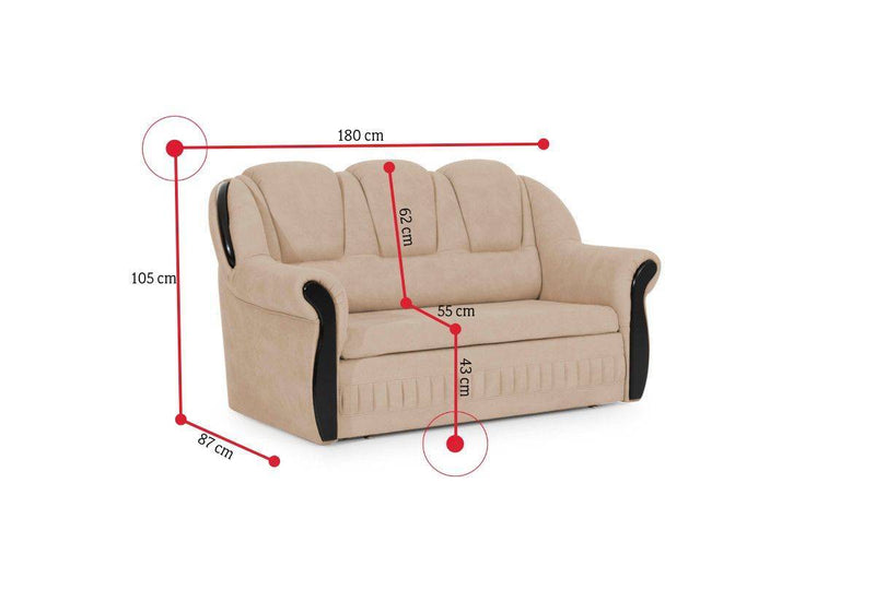 Pohovka QUEEN 3. Rám je vyrobený z kvalitného materiálu. Výplň tvorí kombinácia PUR peny a bonellových pružín. Disponuje tiež rozkladacím mechanizmom, ktorý ľahko premení pohovku na lôžko. Ďalšou výhodou je úložný priestor, kam možno ukryť napríklad lôžkoviny.