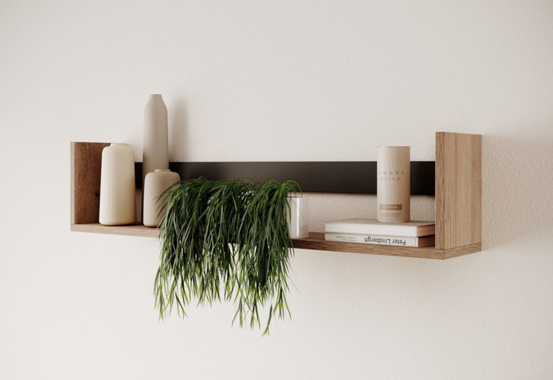 Polica CELINE. Zaujme vás jednoduchým dizajnom. Závesná polica je vyrobená z kvalitných materiálov v prírodnom dekore, ktoré chránia ABS hrana pred mechanickým poškodením a vlhkom. Police držia na kovových konzolách. Táto polica si nájde miesto v každej domácnosti. Policu je možné kombinovať s výrobkami z radu CELINE.