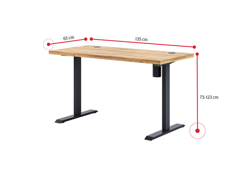 Polohovací stôl LARGE. Základ tvorí kovová konštrukcia pre požadovanú pevnosť a stabilitu. Pracovná doska je vyrobená z kvalitného materiálu hrúbky 1,8 cm. Ochranná ABS hrana zabráni mechanickému poškodeniu a vzniknutiu vlhkosti. Vďaka výkonnému elektrickému mechanizmu možno výšku pracovnej plochy podľa potreby upraviť na 73-123 cm. Jednoduché ovládanie je zabudované priamo v doske stola. Priestranná plocha ponúka dva otvory na kabeláž.