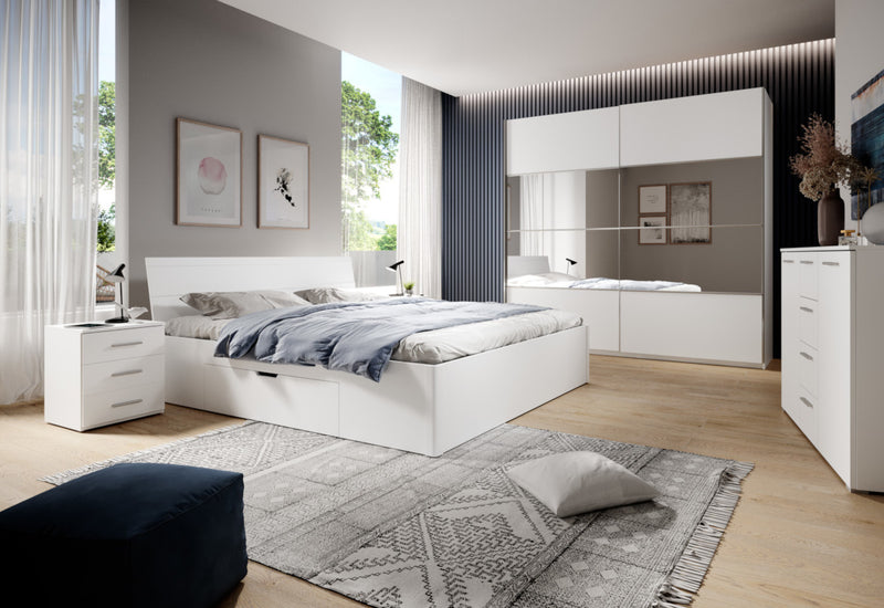 Posteľ BORDA + úložný priestor. Moderná posteľ je vyrobená z kvalitného materiálu chráneného ABS hranou pred mechanickým poškodením. Obsahuje úložný priestor v podobe zásuvok, ktoré sú situované tak, aby boli pohodlne dostupné z oboch strán lôžka.