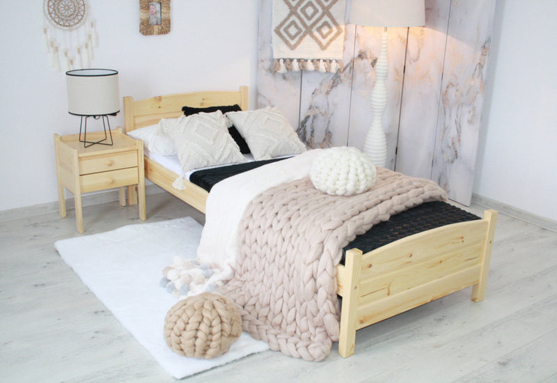 Posteľ z masívu ANGEL + matrac + rošt 90x200 cm je vyrobená z masívu. Ošetrená je ekologicky nezávadným lakom. K jednolôžkovej posteli je zadarmo pevný latkový rošt a matrac. Vyberať si môžete z viacerých dekorov. Vyvýšená posteľ je obľúbená u seniorov alebo osôb s problémami pohybového aparátu.Pri produkte je foto iba ilustračné. Čelá postele neobsahujú vyfrézovaný štvorec.