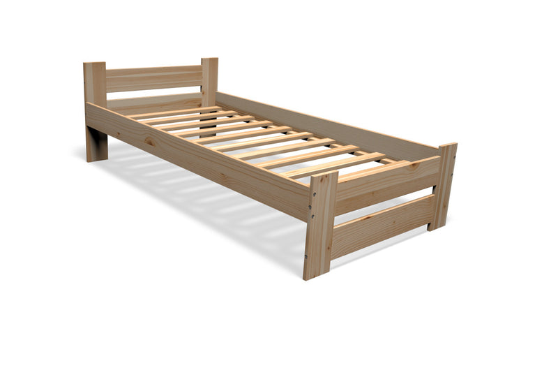 Posteľ z masívu STUDENT je vyrobená z borovicového dreva opracovaného do hladka. Materiál má hrúbku 28 mm a nie je lakovaný. Súčasťou je tiež latkový rošt, ktorý vám dodáme ZDARMA. Vybrať si môžete z piatich rozmerov spacej plochy.